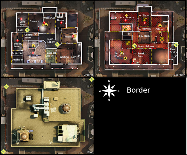 For this very reason, I had the idea of grabing all Ranbow Six Siege maps and write down all the information I was lacking, so I can study them, or get some reference of where I am and where I want to go for whatever purpose. Since I have 2 screens I can set the map I'm playing on in one screen while I actually play that map on the game, no exaclty the minimap I would like to have, but it does help you get around. On another note, Rainbow Six Siege maps are quite packed and very tricky to get by at first, since walls and floors can be broken, suddenly providing many re-routes or rotation routes.